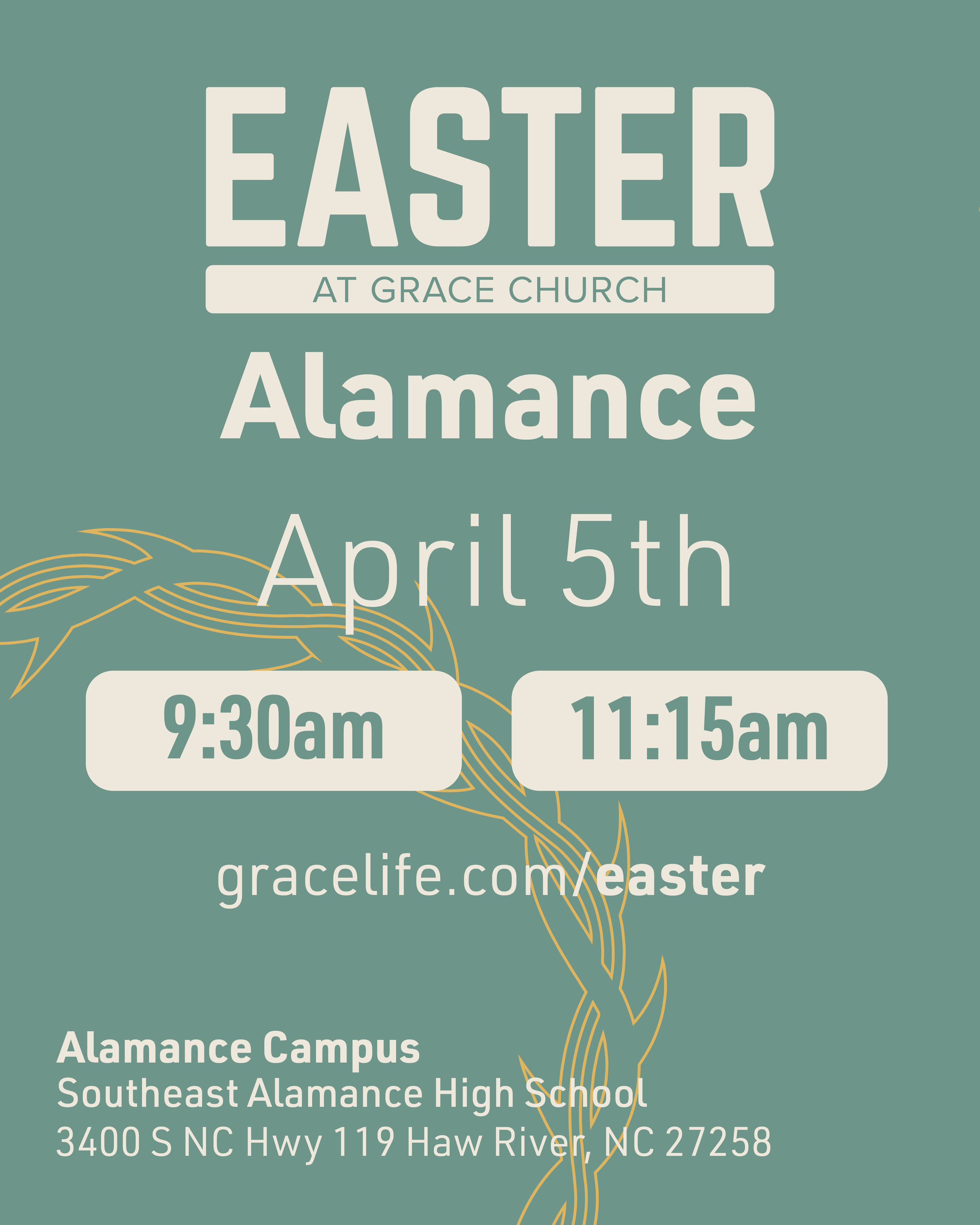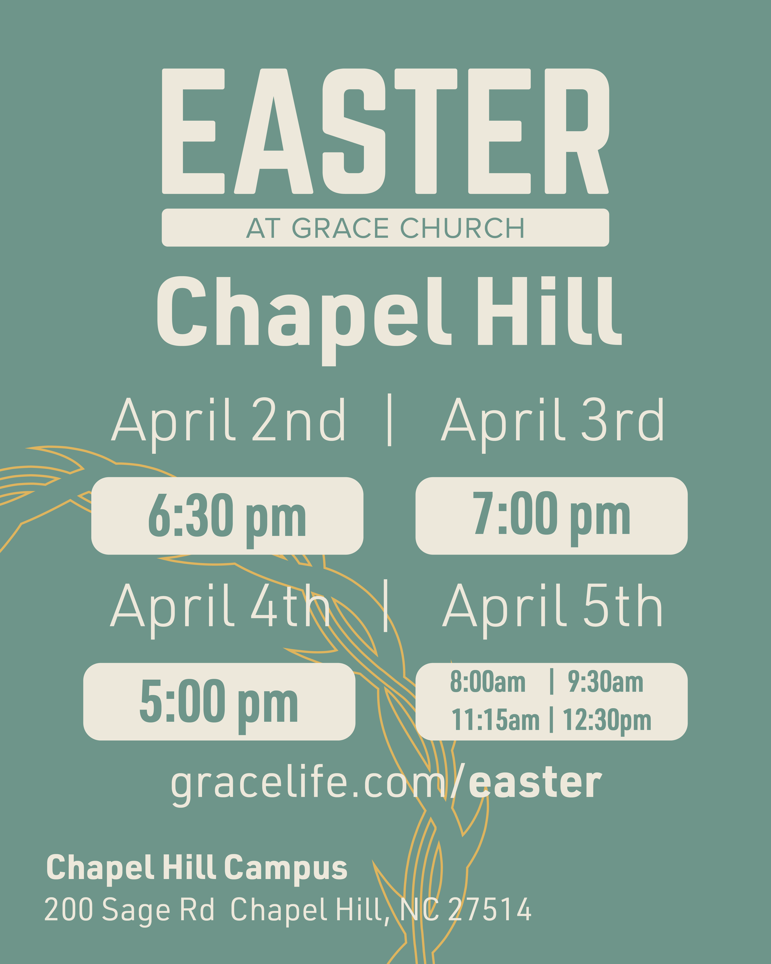 Please let us know if you're visiting our Chapel Hill or Alamance Campus by clicking below – we look forward to celebrating this Easter with you!